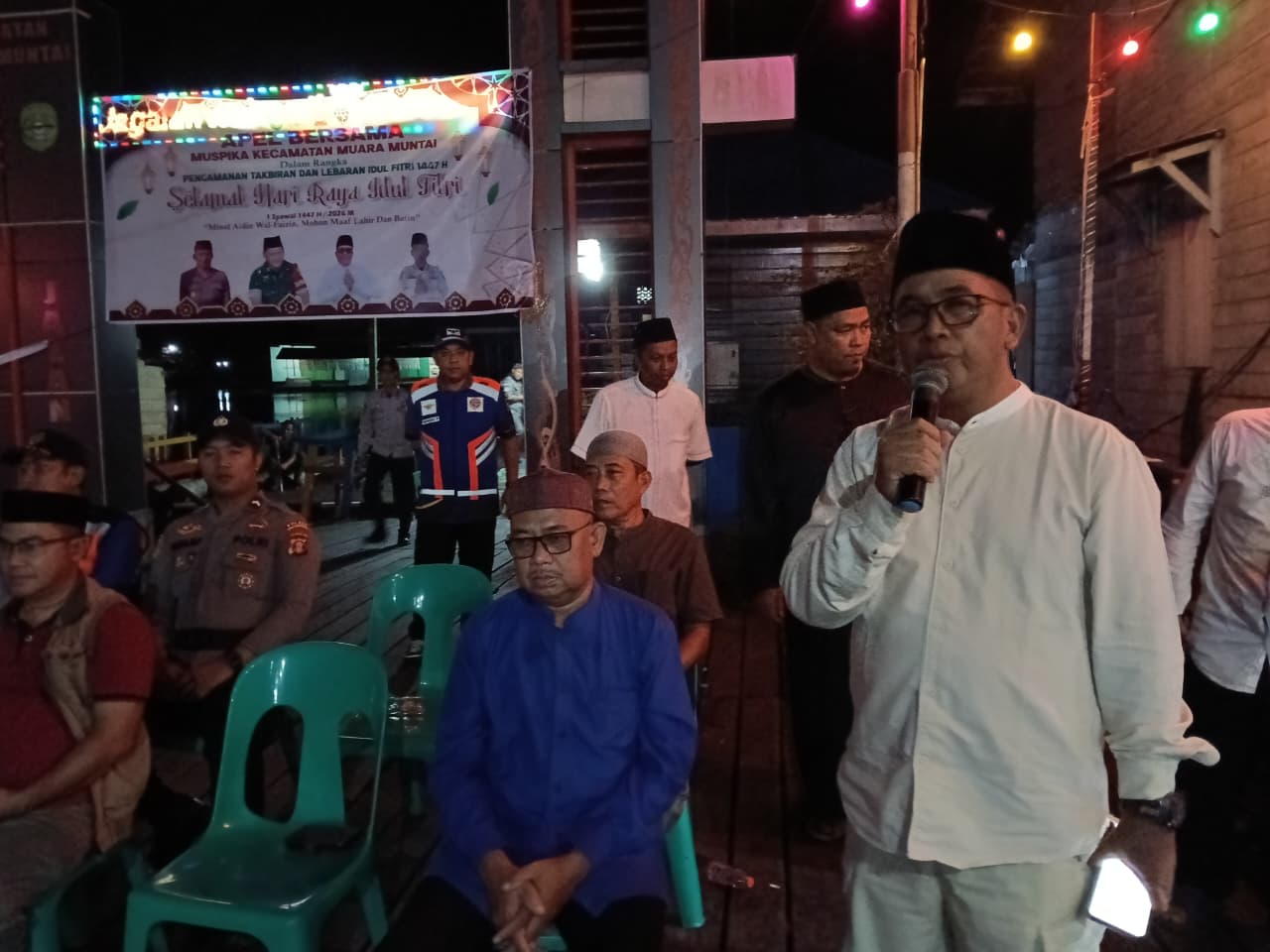 Acara diawali dengan pembacaan takbir bersama yang dipimpin langsung oleh Camat Muara Muntai, H. Mulyadi, SE., M.Si, dan diikuti oleh seluruh tamu undangan serta masyarakat yang memadati lokasi pelabuhan. Hadir dalam kegiatan tersebut Anggota DPRD Kabupaten Kutai Kartanegara (Sopan Sopian, S.Pd), unsur pimpinan kecamatan (Forkopimcam) yang terdiri dari Kapolsek dan Danramil Muara Muntai, pejabat struktural kantor kecamatan, Koordinator UPT Layanan Pendidikan (Syaifuddin Noor, S.Pd), Koordinator Dinas Perhubungan (Woludi), hingga Kepala Desa Muara Muntai Ulu (Husain, S.Pd).